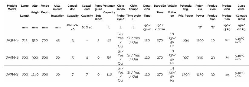 CARACTERÍSTICAS TÉCNICAS ABATIDORES DAN-S: