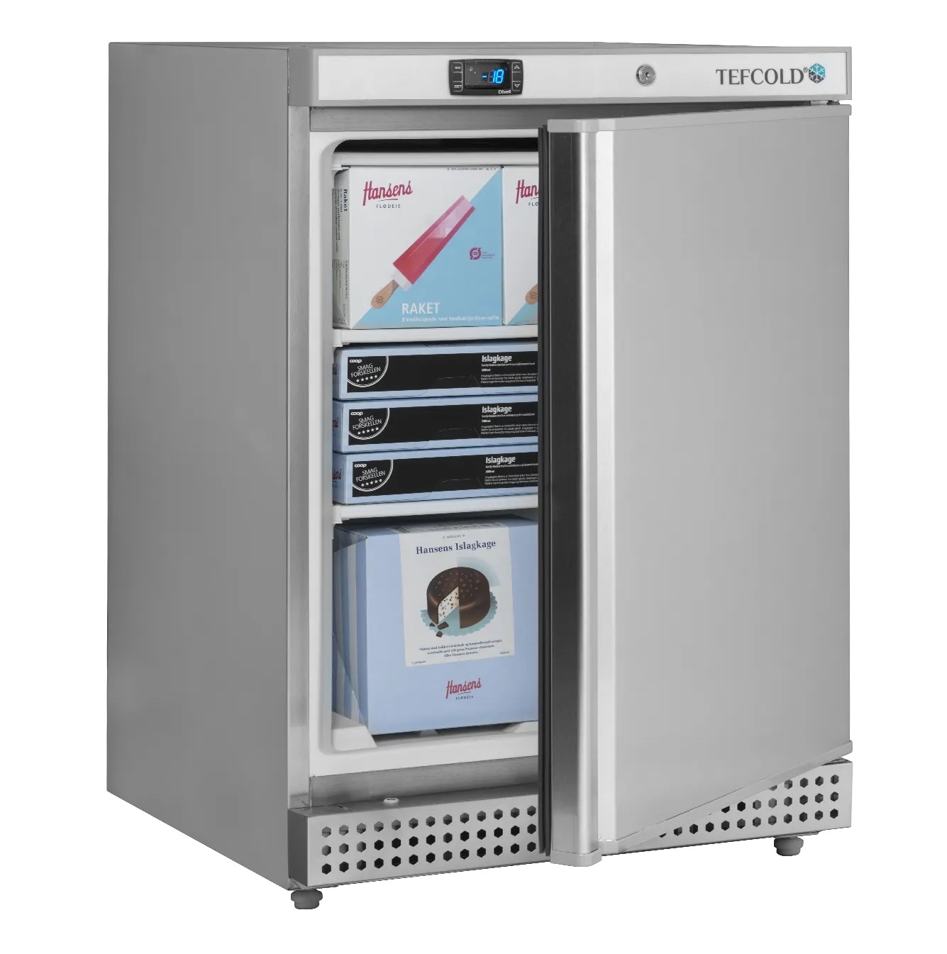 Congelador en acero inoxidable de almacenamiento de tamaño reducido recomendado para pequeños espacios, optimizando el almacenamiento del producto.