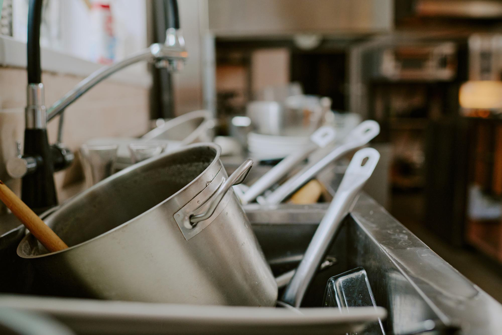 Uno de los trabajos más pesados en la cocina es lo relacionado al aseo. La limpieza de ollas, vajillas, bandejas y demás utensilios resulta una tarea abrumadora para el personal