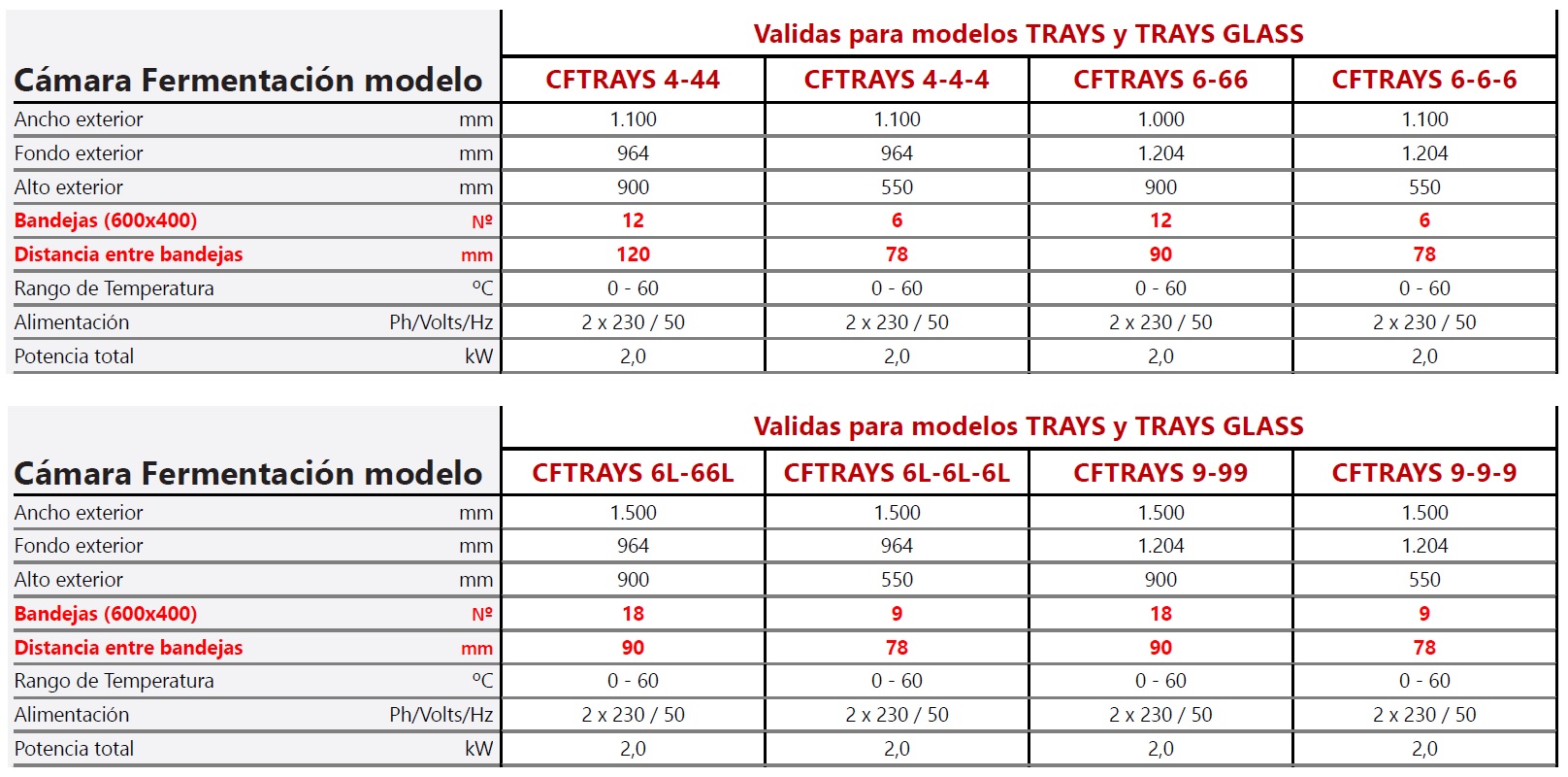 Cámaras de fermentación CFTRAYSL son combinables con los hornos de la serie TRAYS. Fabricado completamente en acero inoxidable y equipadas con puertas de cristal.