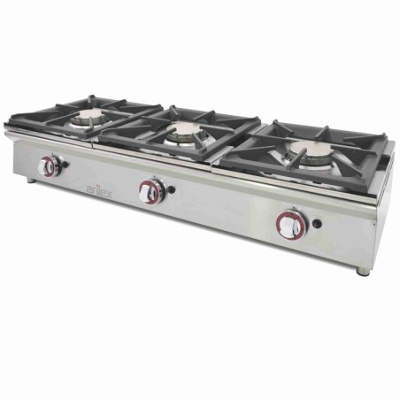 Cocina a gas profesional de fabricación nacional confeccionada con materiales de alta calidad y gran durabilidad, para garantizar un gran servicio. Certificado CE.