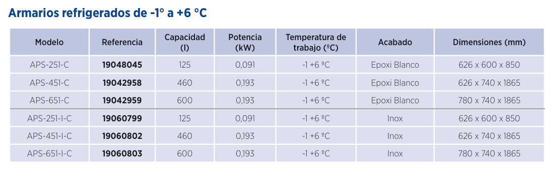 Armarios refrigerados con puerta de cristal en acabado epoxi blanco o acero inoxidable, ideales para dar un toque llamativo a su establecimiento pudiendo mostrar a sus clientes los productos deseados a exponer.