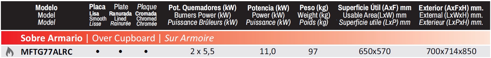 Frytop a Gas Con mueble Línea MAGISTRA PLUS 700 MFTG77ALRC MBM