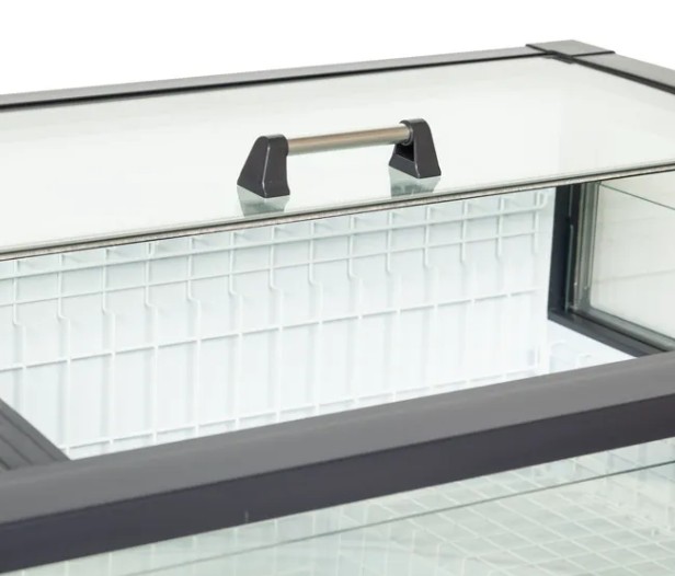 Las tapas de cristal deslizantes de apertura frontal facilitan el acceso, mientras que la iluminación LED interior y el fondo ajustable permiten una presentación impecable y flexible. Ideal para supermercados que buscan eficiencia, estética y versatilidad en un solo equipo.