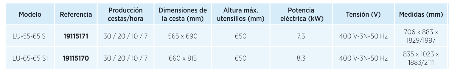 • Boiler atmosférico de 9 kW, cuba de lavado de 6 kW, bomba de lavado potenciada de 2 kW, y una bomba de aclarado de alto rendimiento.
