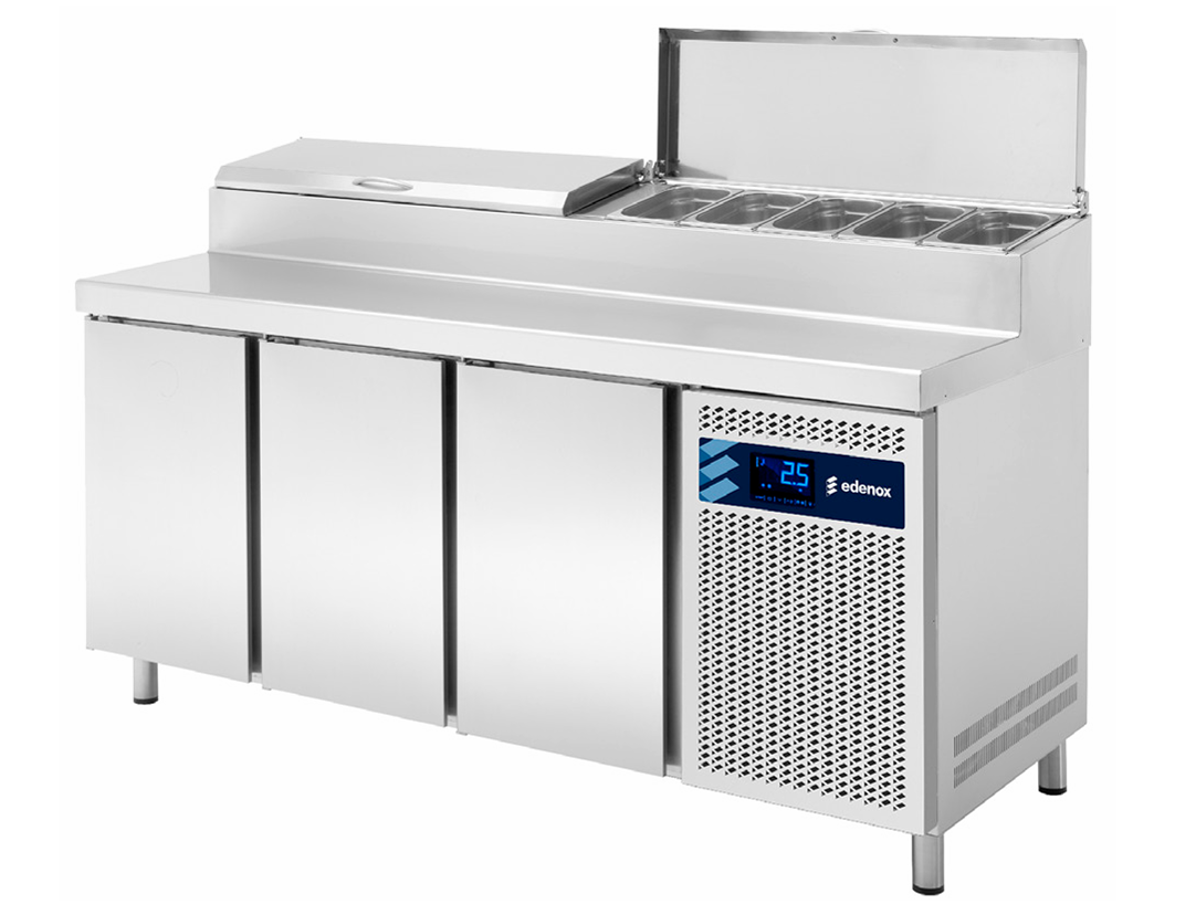 • Las mesas refrigeradas de Edenox, con su nuevo diseño, incorporan sistema de ventilación y condensación frontal, lo que les permite aspirar y expulsar aire por delante, asegurando un óptimo rendimiento incluso en espacios encajonados.