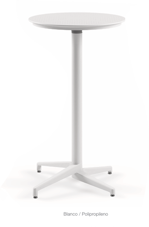 Mesa Alta Ideal para espacios reducidos o para optimizar el espacio en cafeterías, etc. Ofrece buena estabilidad gracias a su base en forma de cruz. El soporte central permite mayor comodidad para el cliente.