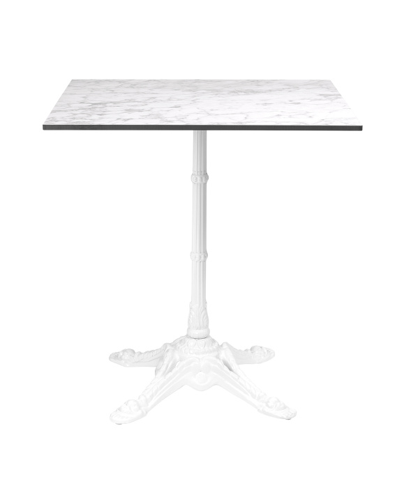 Mesa de estilo Clásico o vintage, con detalles ornamentales que recuerdan al diseño del siglo XIX o principios del siglo XX. Este tipo de pie es típico de mesas de café estilo parisino o bistró, muy comunes en cafeterías con decoración clásica o retro