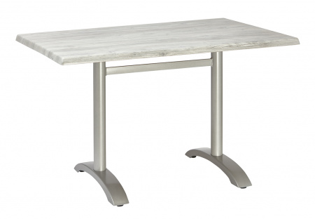 Mesa Rectangular con 2 patas y estructura en H. Muy estable, La base metálica con pies anchos curvados proporciona buena estabilidad, reduciendo el riesgo de tambaleo. Aporta un aspecto moderno y elegante, ideal para restaurantes, cafeterías, etc
