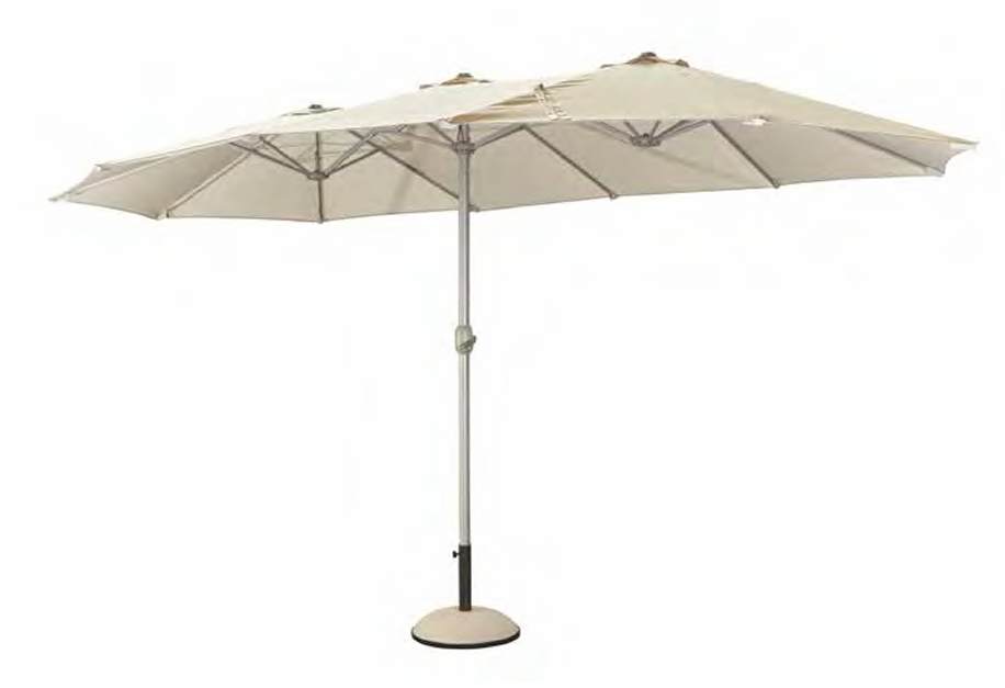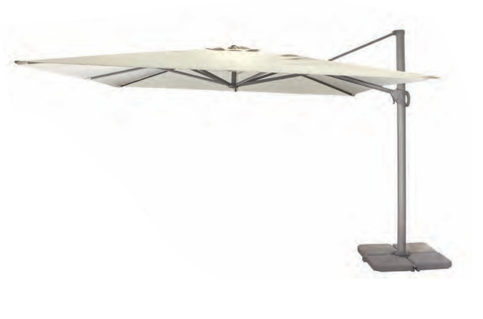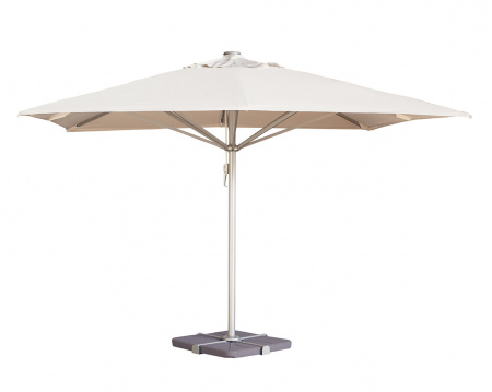 La lona en este tipo de parasoles abarca gran parte o toda la extensión de la mesa del restaurante y el pie, por lo general, está ubicado en el centro como apoyo firme. Todos nuestros modelos cuentan con bases fabricadas con materiales de gran resistencia.