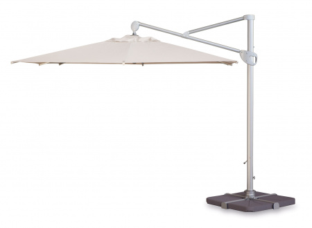 Otro de los tipos versátiles que conseguirás en nuestro catálogo es el diseño de parasol con brazo lateral. Este modelo es ideal para las mesas de bares y restaurantes de grandes proporciones, ya que se inclinan a través de una manivela o corredera hacia la mesa y cubren toda su dimensión, brindando el mejor confort a los clientes.