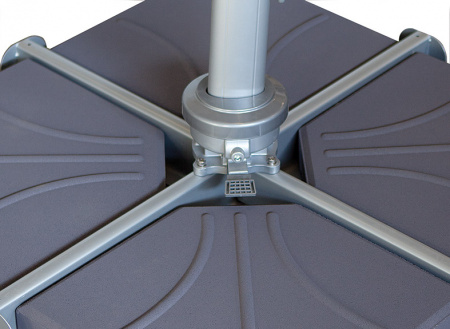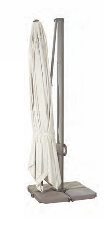• Armazón: Aluminio lacado color gris. Mástil de dos piezas, grosor 90×50 mm. Incluye la cruz de soporte.