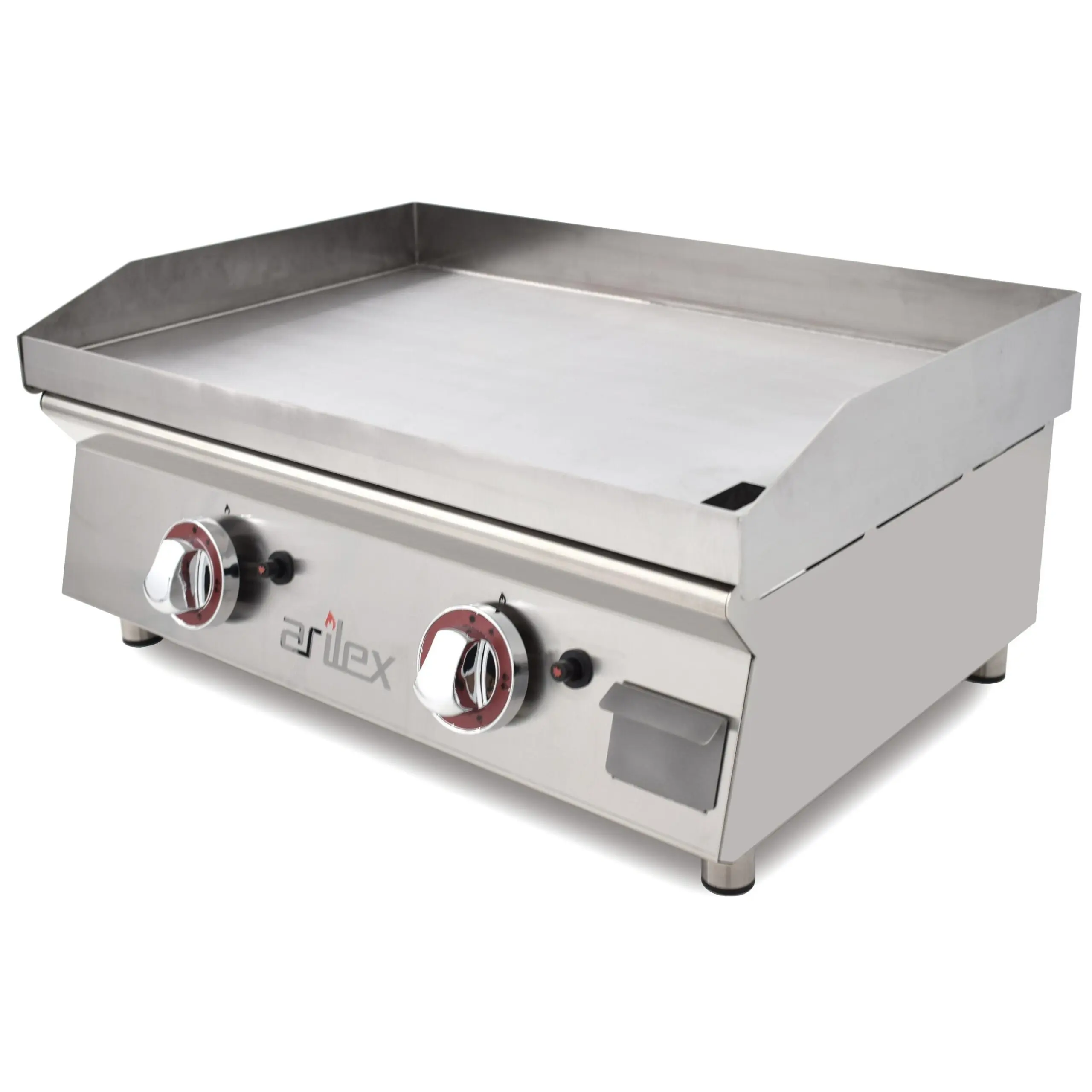 Plancha a gas de asar, fabricada en carrocería inoxidable y acero rectificado de 15mm de espesor, para uso de hostelería profesional.