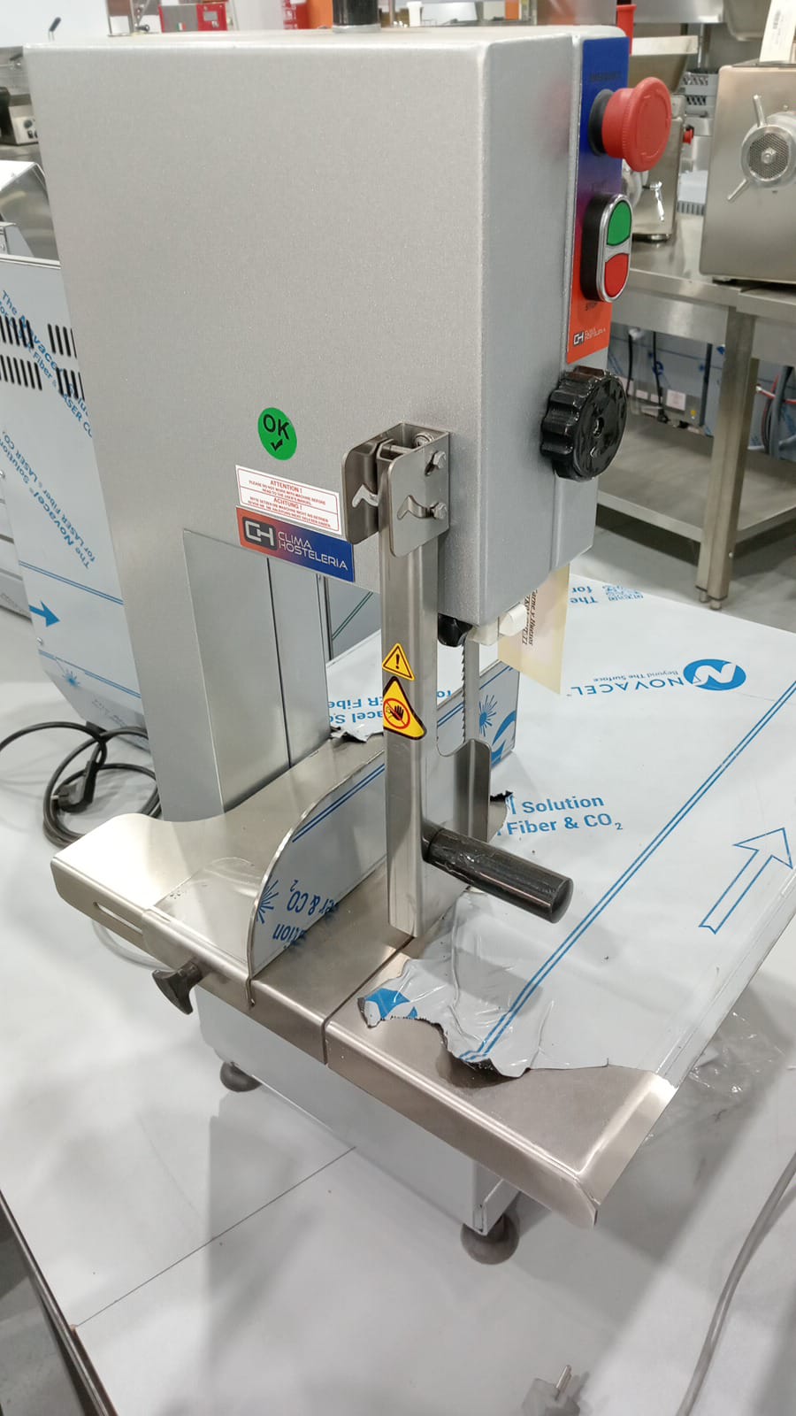 • Potente motor de 750 watios que hace girar la cinta de sierra a una velocidad de 1400 rpm. De este modo incluso los huesos más duros y grandes costillares quedarán seccionados rápidamente y sin esfuerzo.