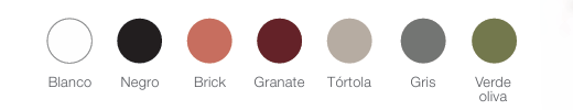 • Colores (a elegir): Blanco/ Negro/ Brick/ Granate/ Tórtola/ Gris/ Verde Oliva