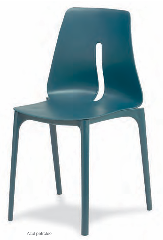 Silla de exterior con armazón de patas de polipropileno 100% inyectado a gas y carcasa fabricada con polipropileno y fibra de vidrio inyectado a gas. Esta silla es ideal para exteriores y está diseñada para resistir las condiciones al aire libre, proporcionando funcionalidad y durabilidad.