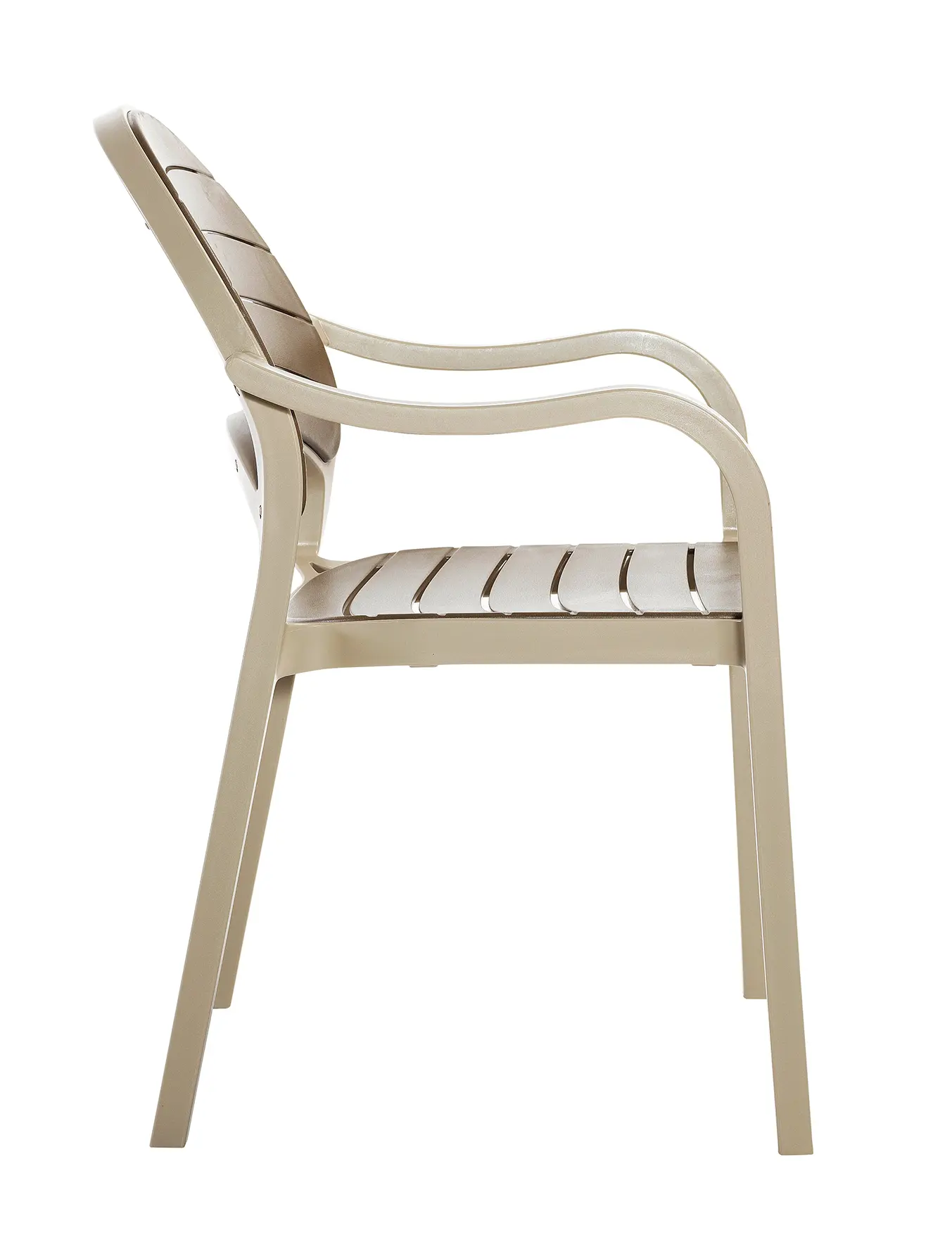 El Sillón Terraza café marrón Siena está diseñado para resistir las exigencias de un negocio. Fabricado con materiales de alta calidad, como el polipropileno inyectado a gas y reforzado con fibra de vidrio, es resistente a golpes y al uso constante.
