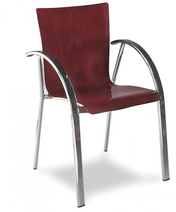 Sillón apilable para uso interior con una carcasa de madera de haya contrachapada y barnizada. Está disponible en una variedad de acabados, incluyendo laminado en blanco, negro, teca y wengué, así como opciones de lacado en blanco y negro. Este sillón combina estilo y funcionalidad para adaptarse a diversos entornos interiores.