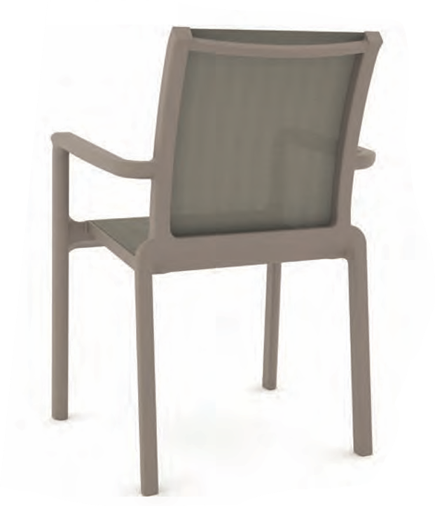 • Armazón: 100% polipropileno inyectado a gas. Asiento y respaldo: Textiline