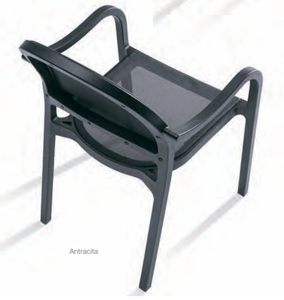 • Armazón: Polipropileno y fibra de vidrio inyectado a gas. Asiento y respaldo: Textiline.