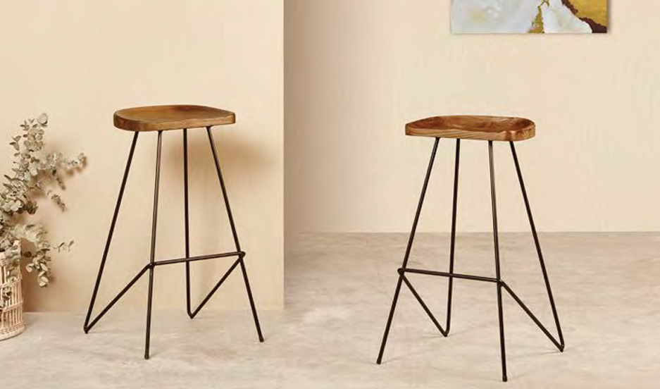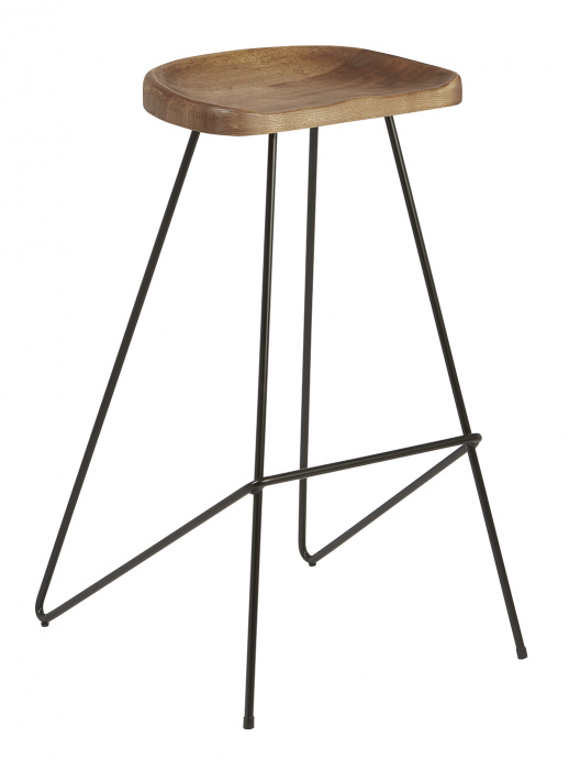 Este taburete de diseño está indicado para su uso en interiores y presenta un sólido armazón de acero en color negro, que aporta un toque de elegancia y durabilidad. Su asiento es de madera, que garantiza calidad y comodidad. Es la elección perfecta para añadir estilo y confort a tu espacio interior.