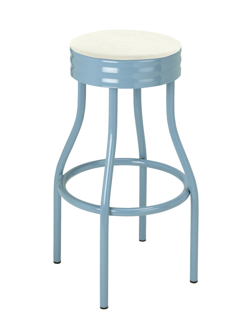 Taburete de Estilo Retro Americano en acero con una gama amplia de acabados de asiento perfecto para Bares, Restaurantes y Espacios Creativos.