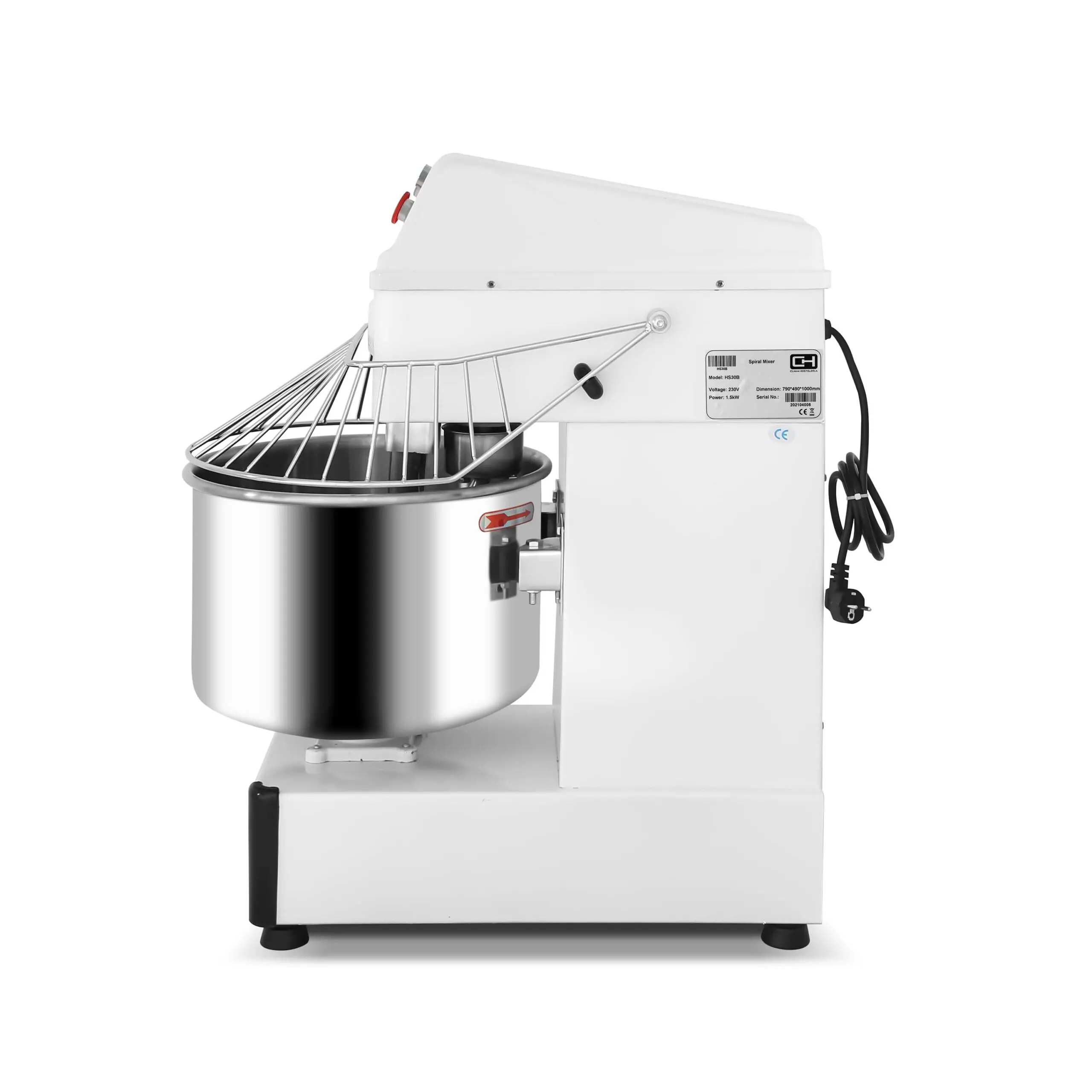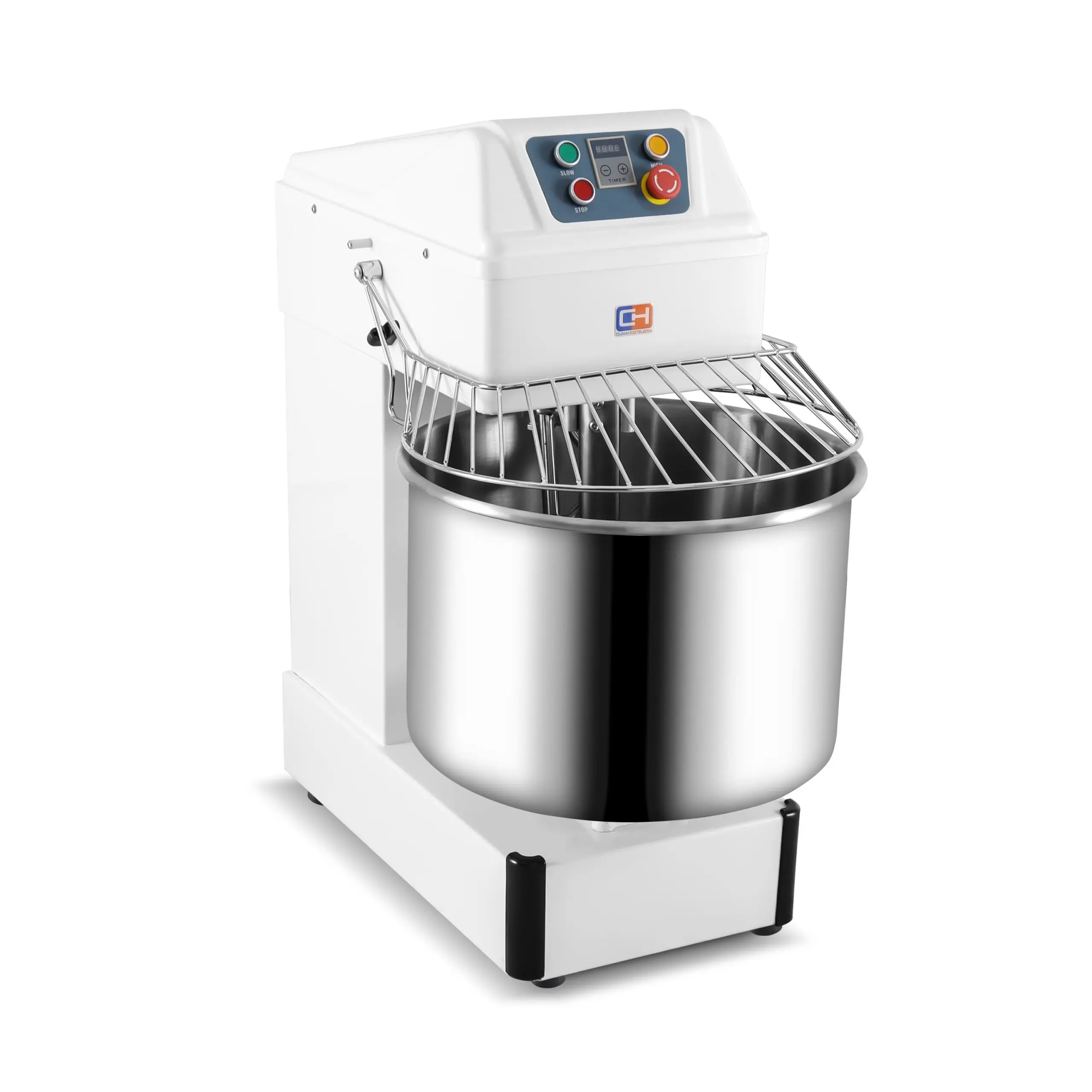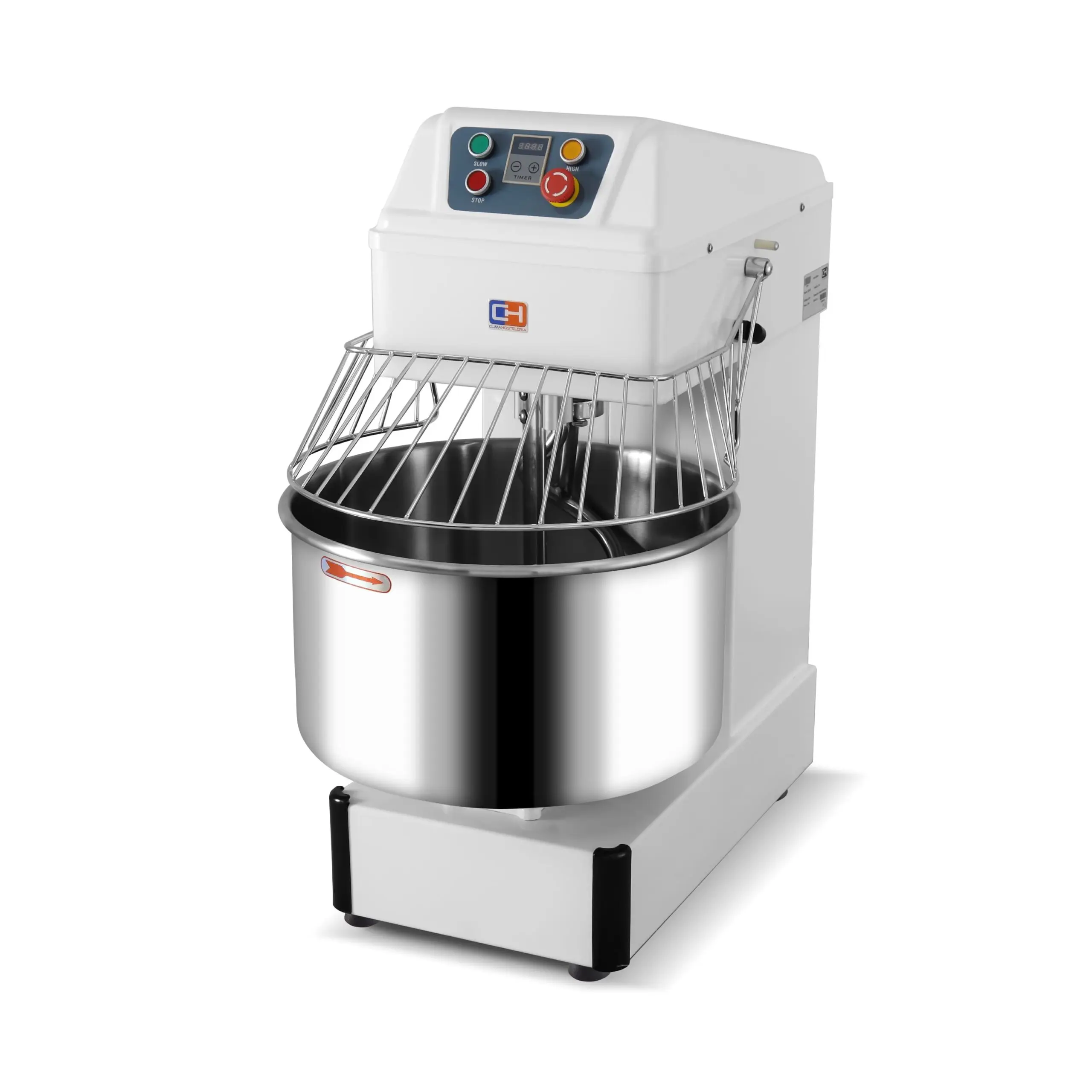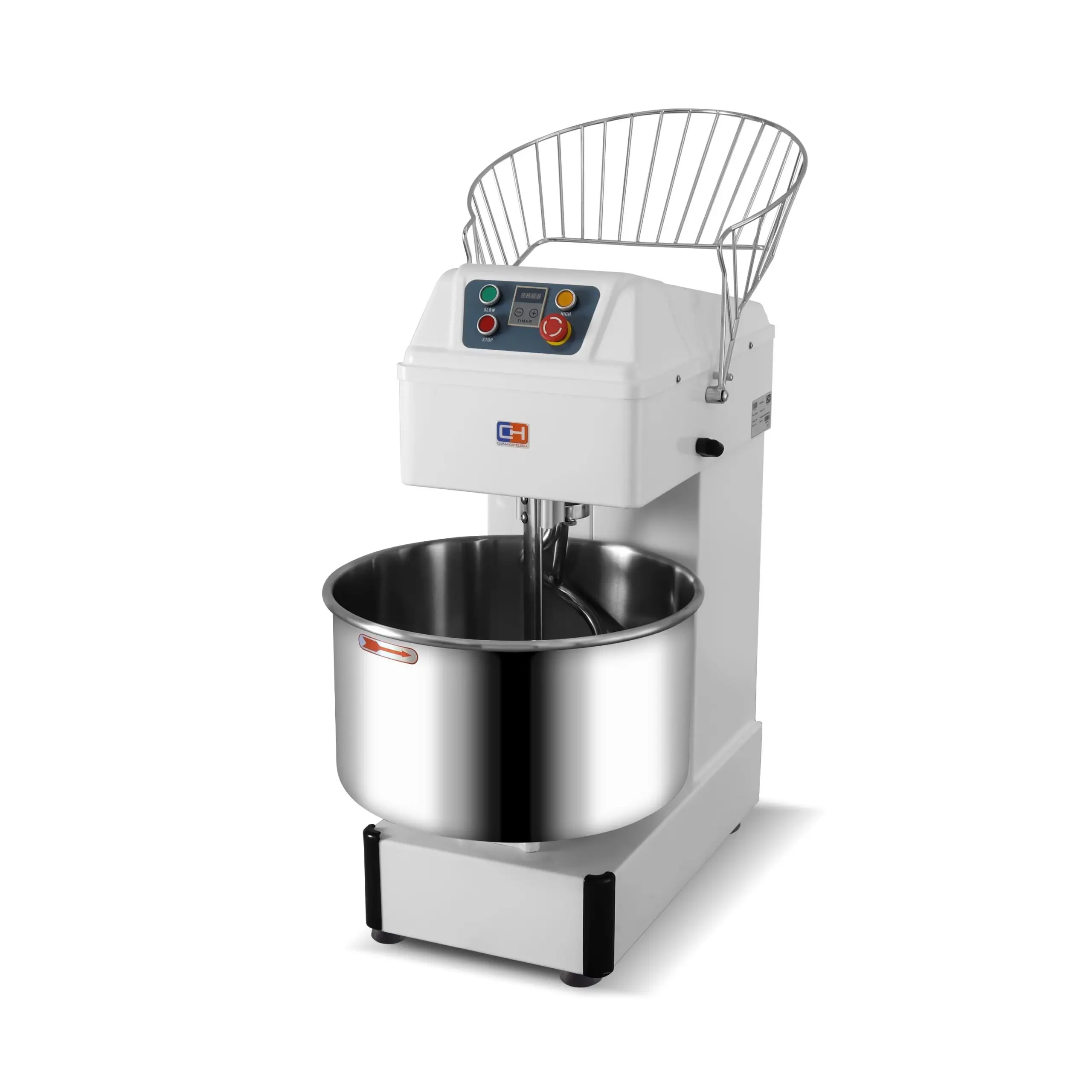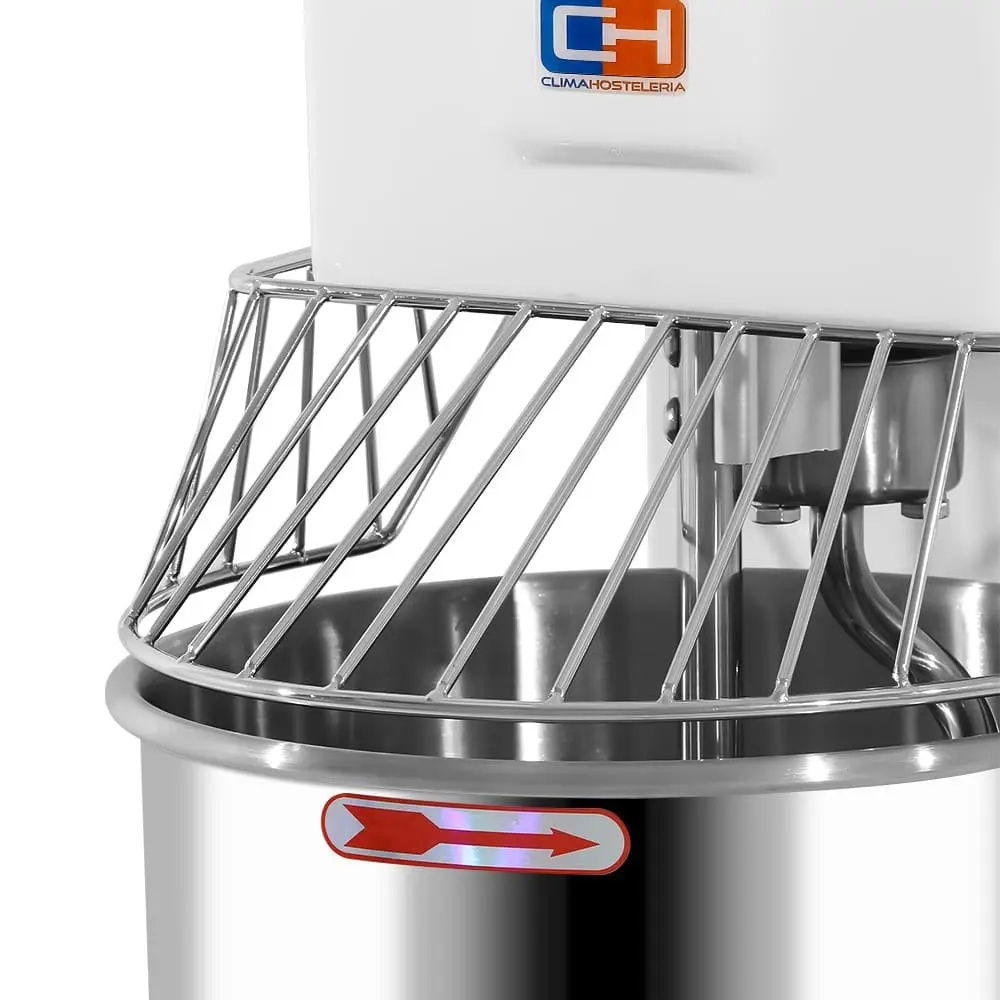 Amasadora espiral profesional compuesta de materiales de calidad, alto rendimiento y gran eficiencia para la preparación de grandes masas tales como pizza o pan.