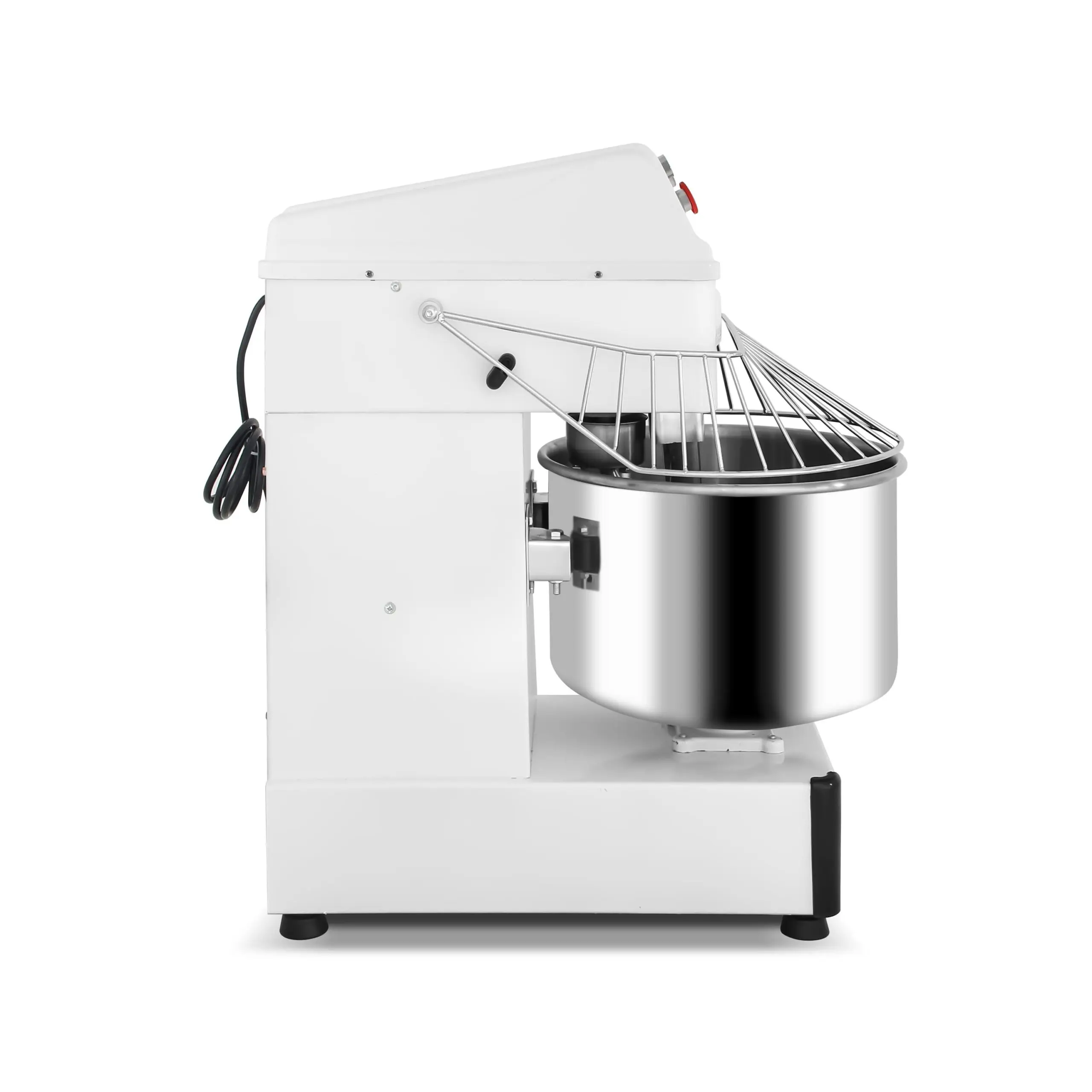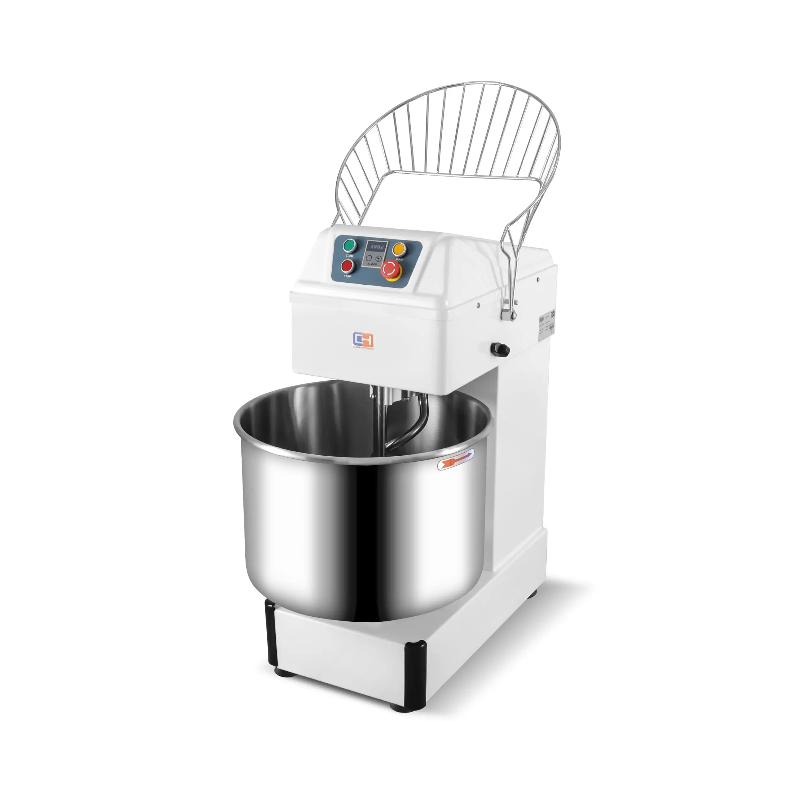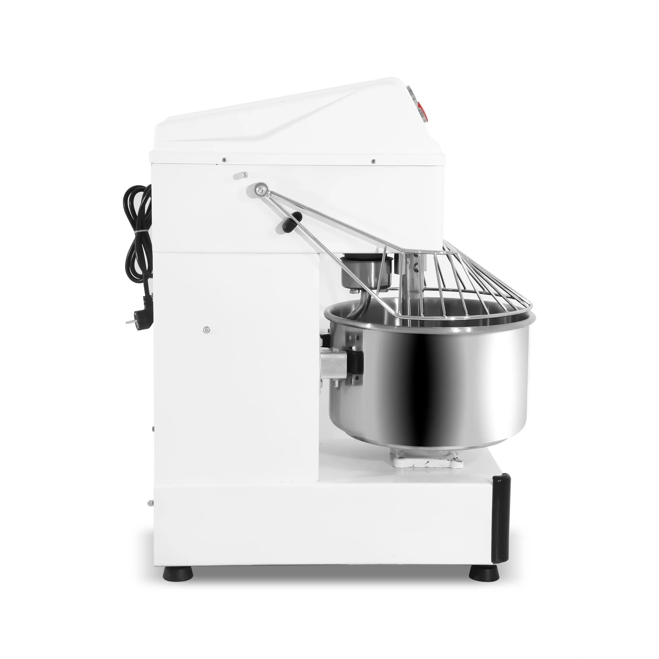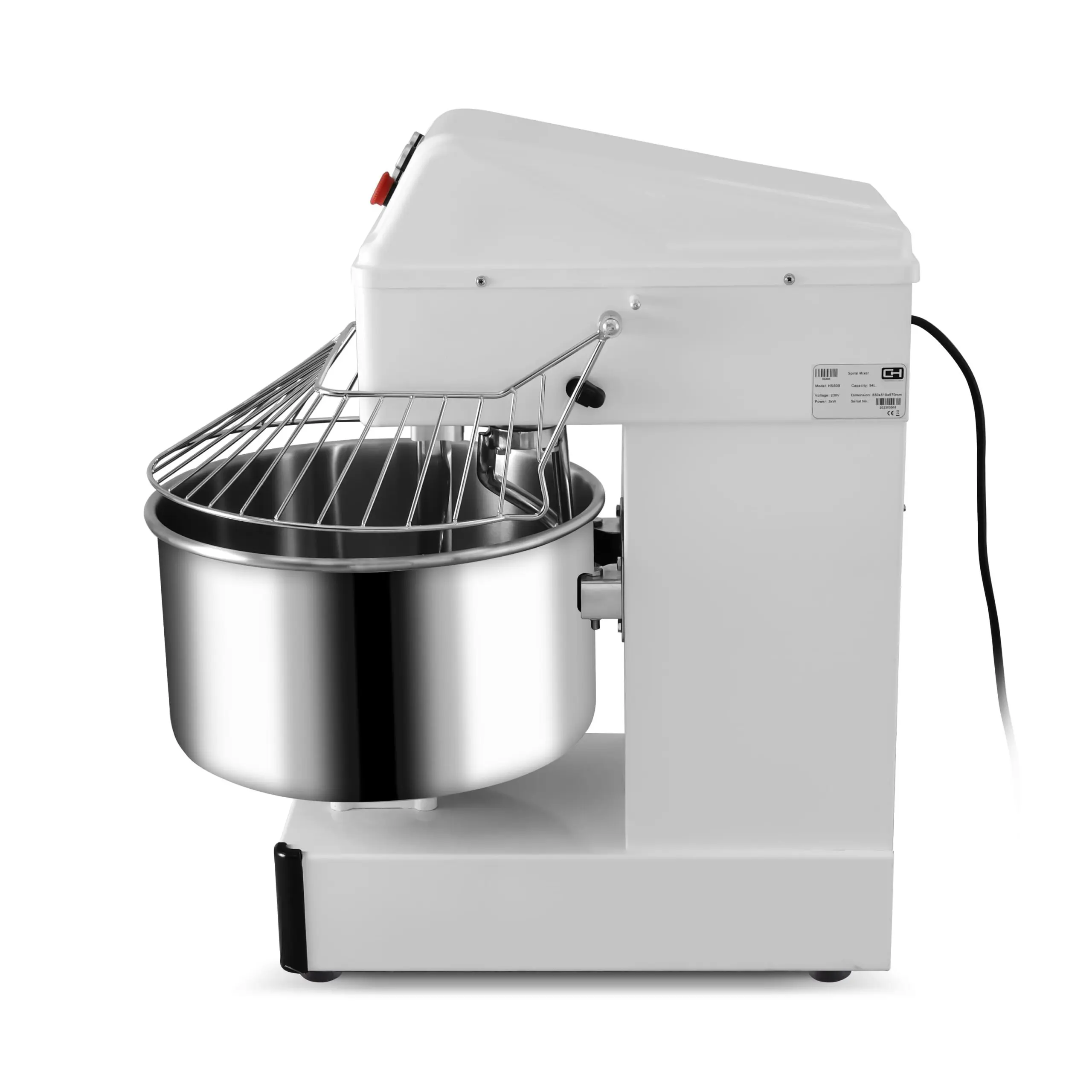 Amasadora espiral profesional compuesta de materiales de calidad, alto rendimiento y gran eficiencia para la preparación de grandes masas tales como pizza o pan.