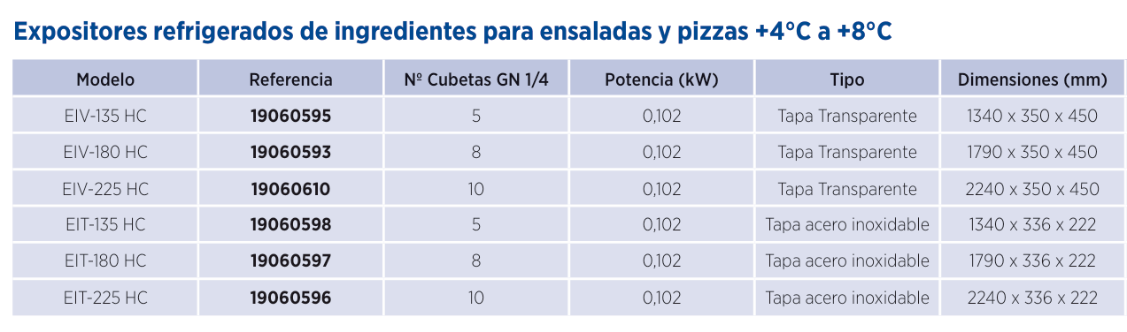 La vitrina refrigerada VIP esta diseñada para adaptarse a cualquier ambiente y exigencia. Disponibles en diferentes medidas para combinar con las mesas de pizza. Puede elegir entre modelos GN 1/4 (327mm de fondo) o modelos GN 1/3 (387mm de fondo).