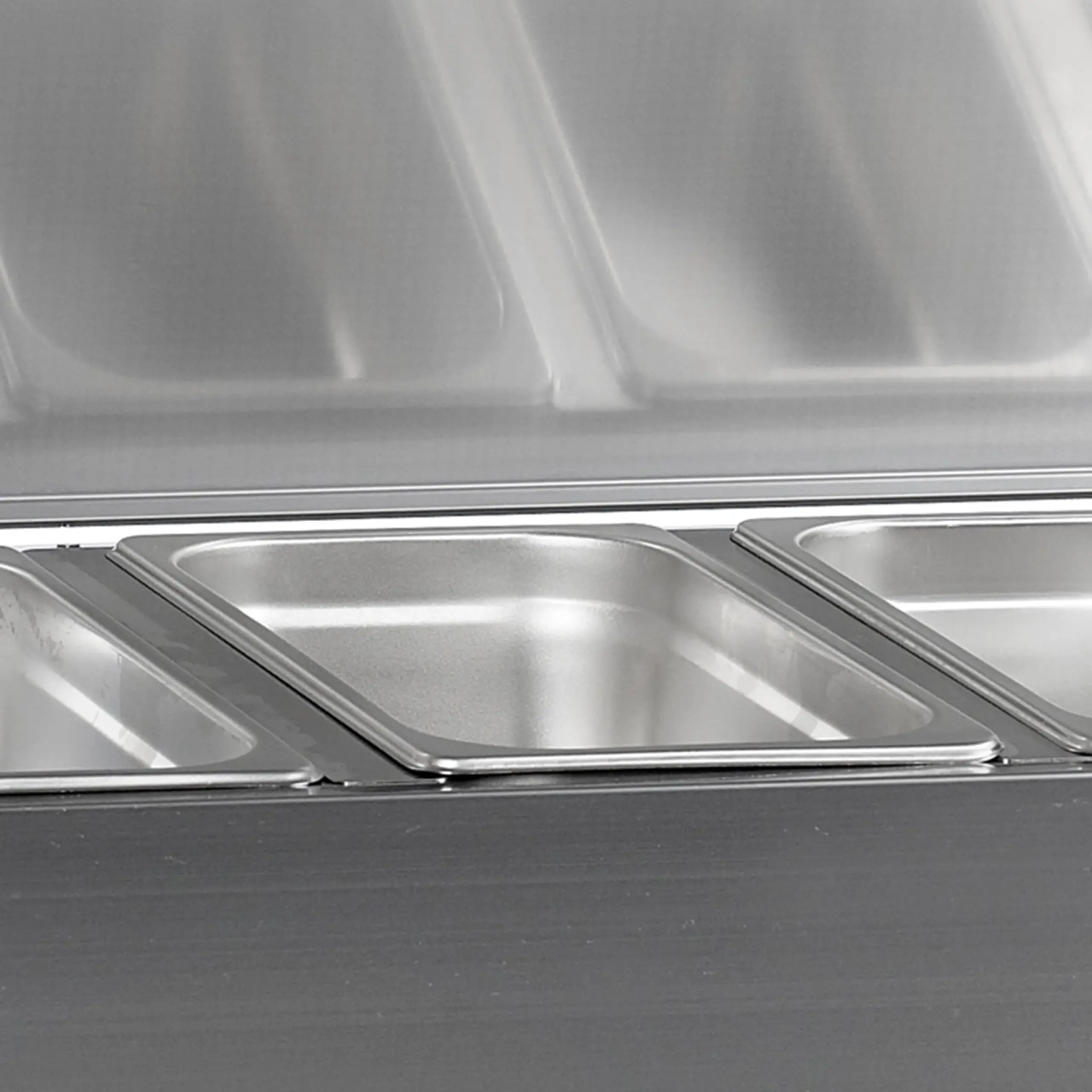 Diseñada para satisfacer las exigencias del servicio de comida rápida. Ya sea una pizzería, un restaurante de comida rápida o una sandwichería, esta vitrina refrigerada facilita la preparación de los alimentos y garantiza que todo lo que necesita esté organizado y al alcance de la mano